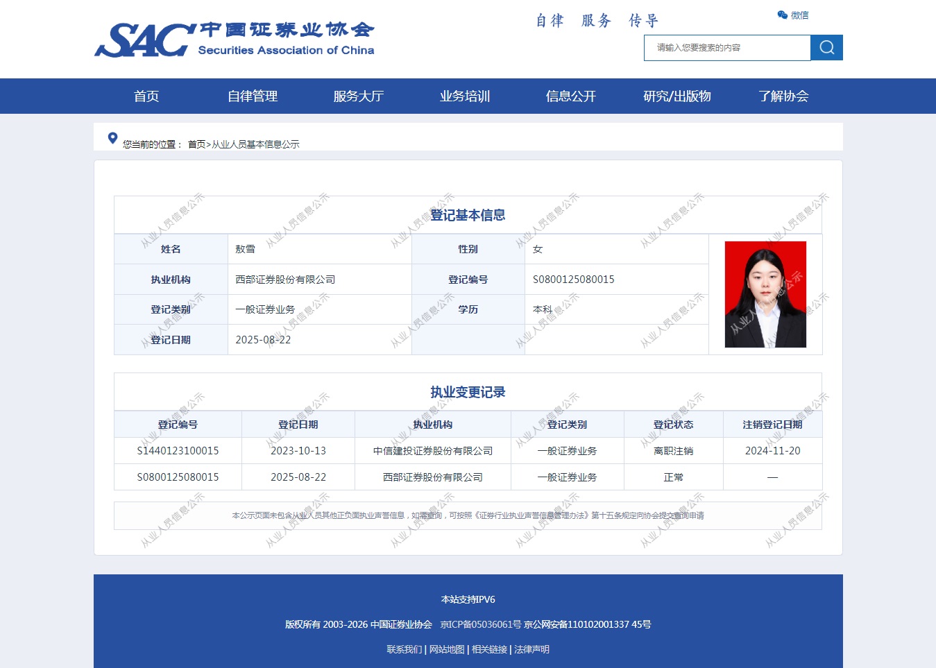 | 敖雪 | S0800125080015 | 乌鲁木齐红山路营业部 | 一般证券业务 | 查看详情 |