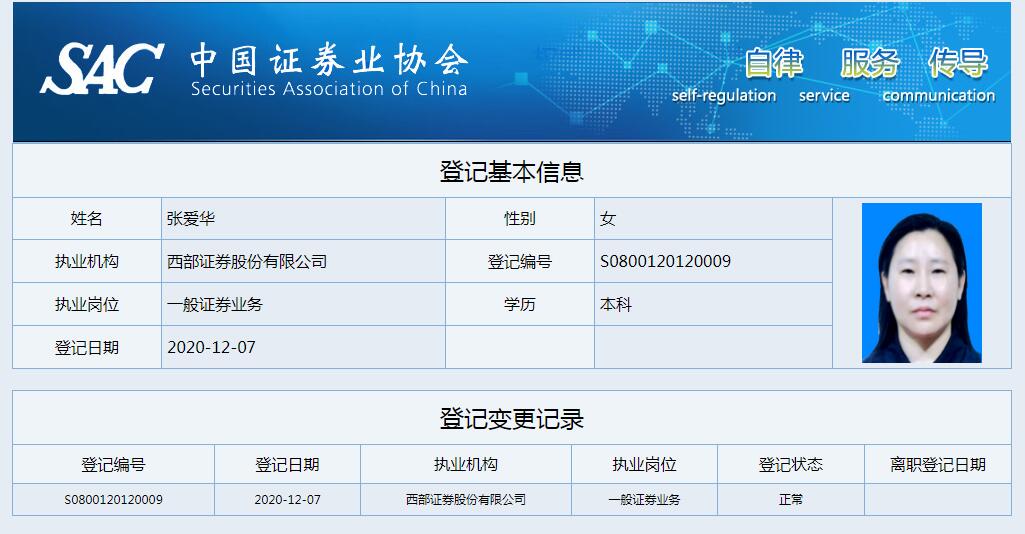 | 张爱华 | S0800120120009 | 上海分公司 | 一般证券业务 | 查看详情 |