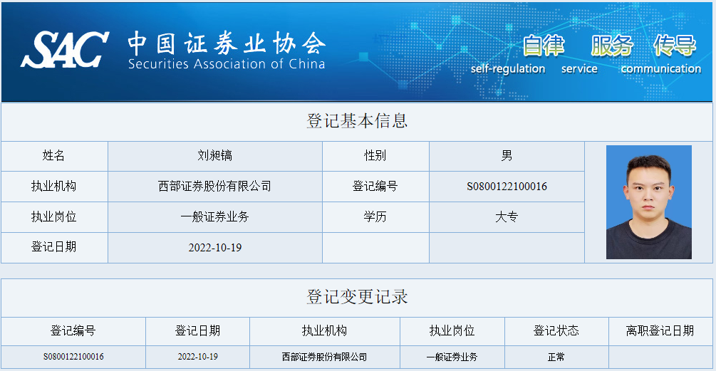 | 刘昶镐 | S0800122100016 | 山东分公司 | 一般证券业务 | 查看详情 |
