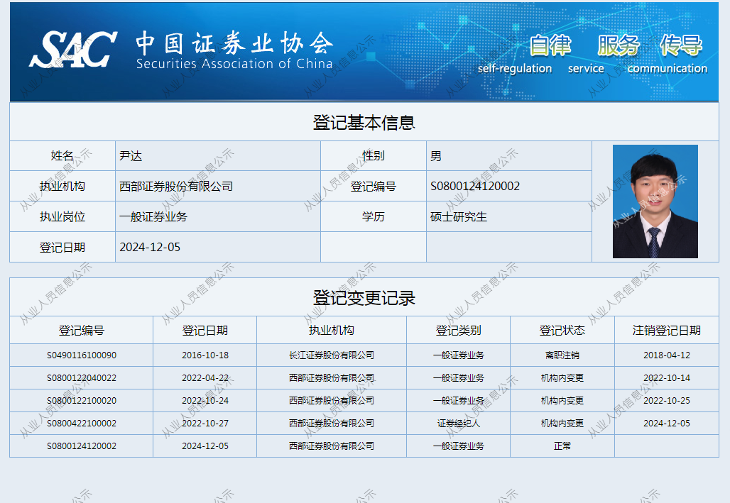 | 尹达 | S0800124120002 | 湖南分公司 | 一般证券业务 | 查看详情 |
