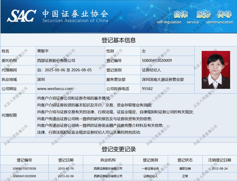 | 胥智平 | S0800413020009 | 深圳深南大道营业部 | 证券经纪人 | 查看详情 |