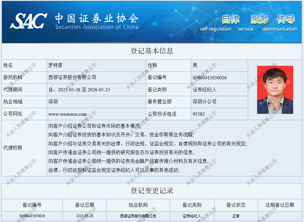 | 罗梓原 | S0800415050016 | 深圳分公司 | 证券经纪人 | 查看详情 |