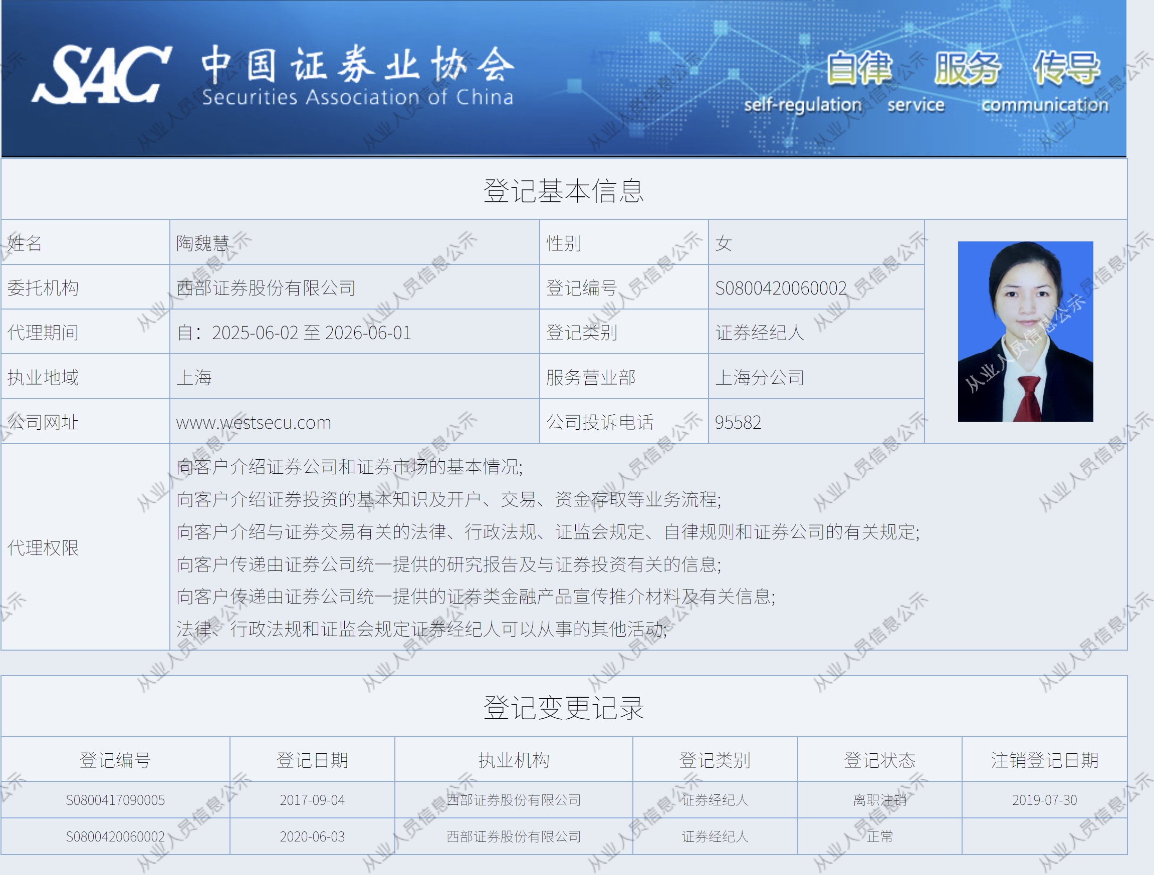 | 陶魏慧 | S0800420060002 | 上海分公司 | 证券经纪人 | 查看详情 |