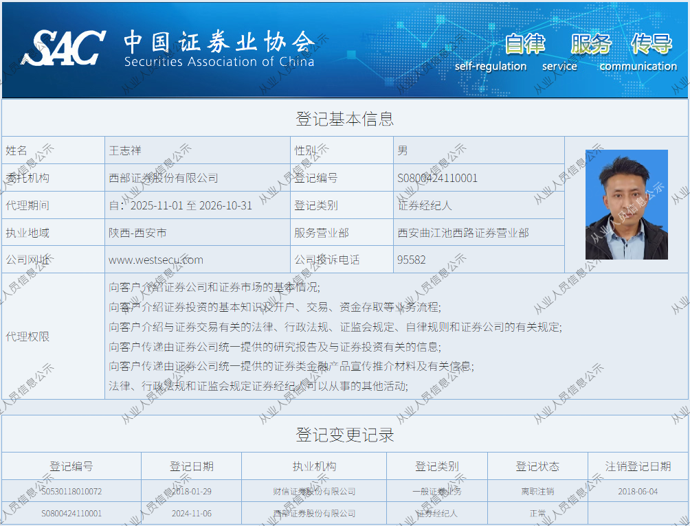 | 王志祥 | S0800424110001 | 西安曲江池西路营业部 | 证券经纪人 | 查看详情 |